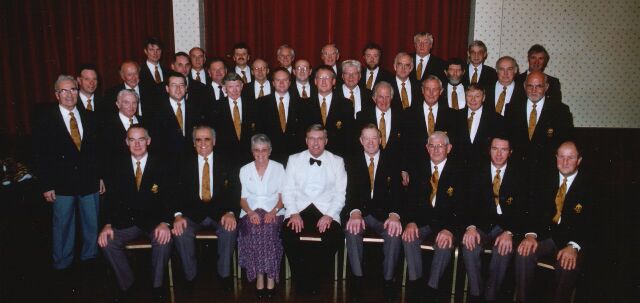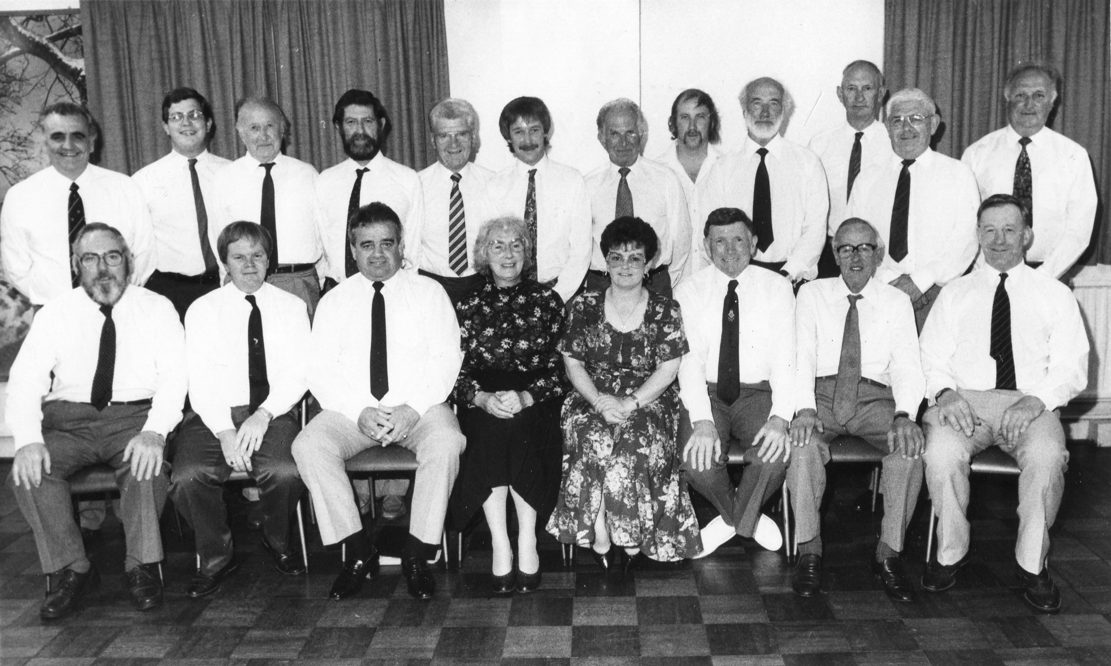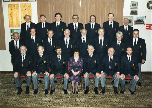 Norman Oak, Jeffrey Grylls (standing), John Pollard, Allan John, Adrian Wilton, Roy Wilton (MD), Adrian Foss (standing)